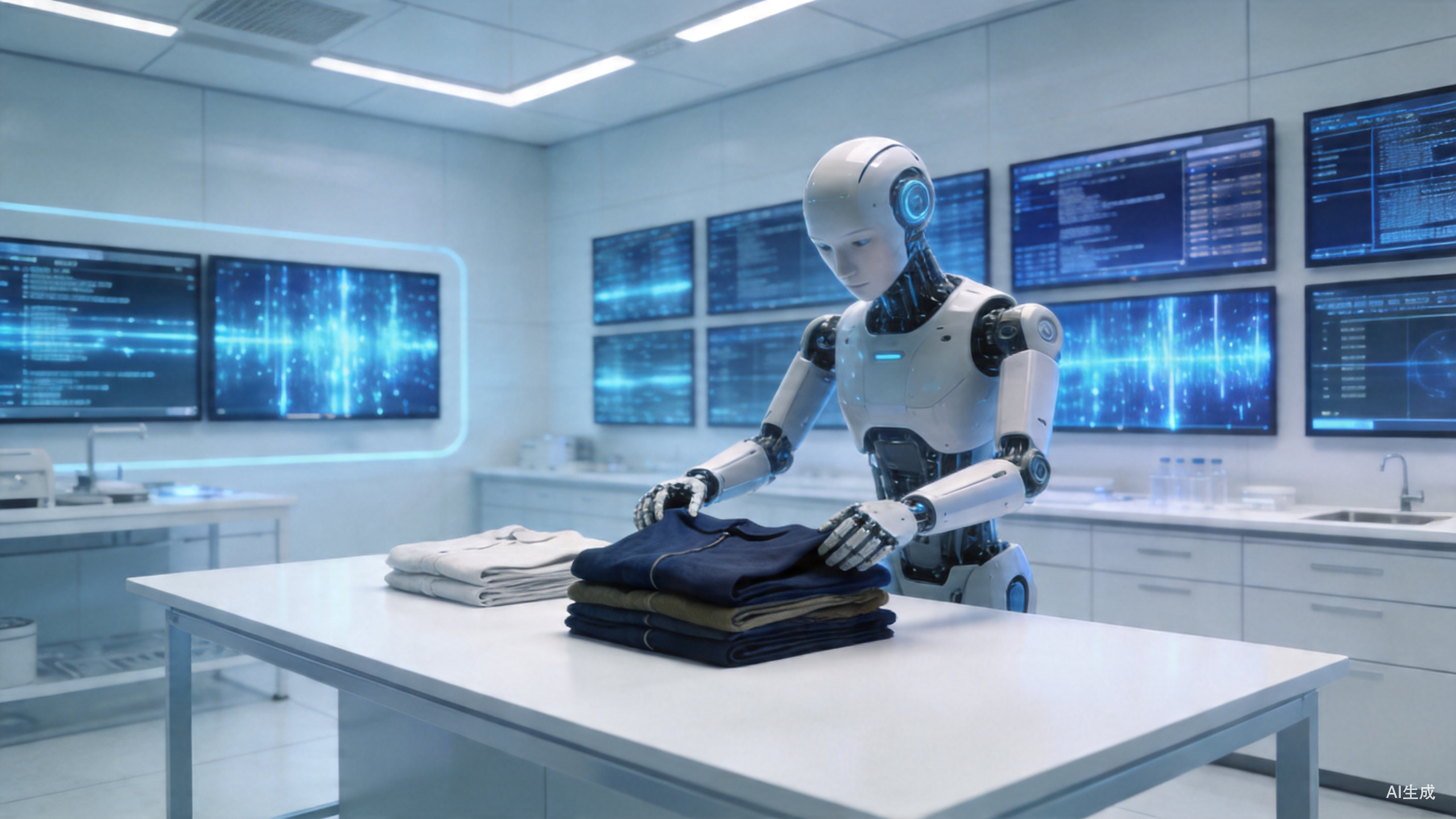 这也是为什么它在面对叠衣服这种没见过的任务时,并不靠猜,会做类似抓取、展开、对齐、折叠这样的组合推理。