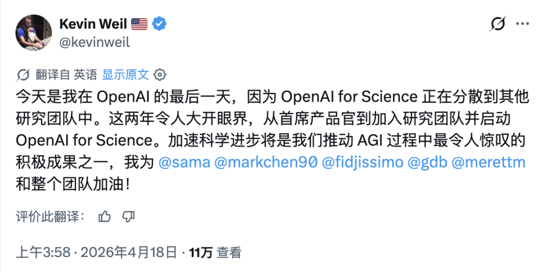 4、https://x.com/kevinweil/status/2045230426210648348