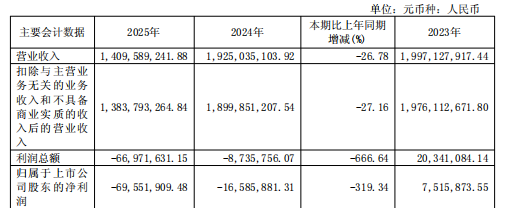 行业的冷意也“侵袭”了惠发。15日晚间,山东惠发食品股份有限公司(以下简称”惠发食品”)发布2025年年报,去年公司营业收入14.1亿元,同比下滑26.78%,创近五年最大跌幅;归母净利润亏损6955万元,同比扩大319%。