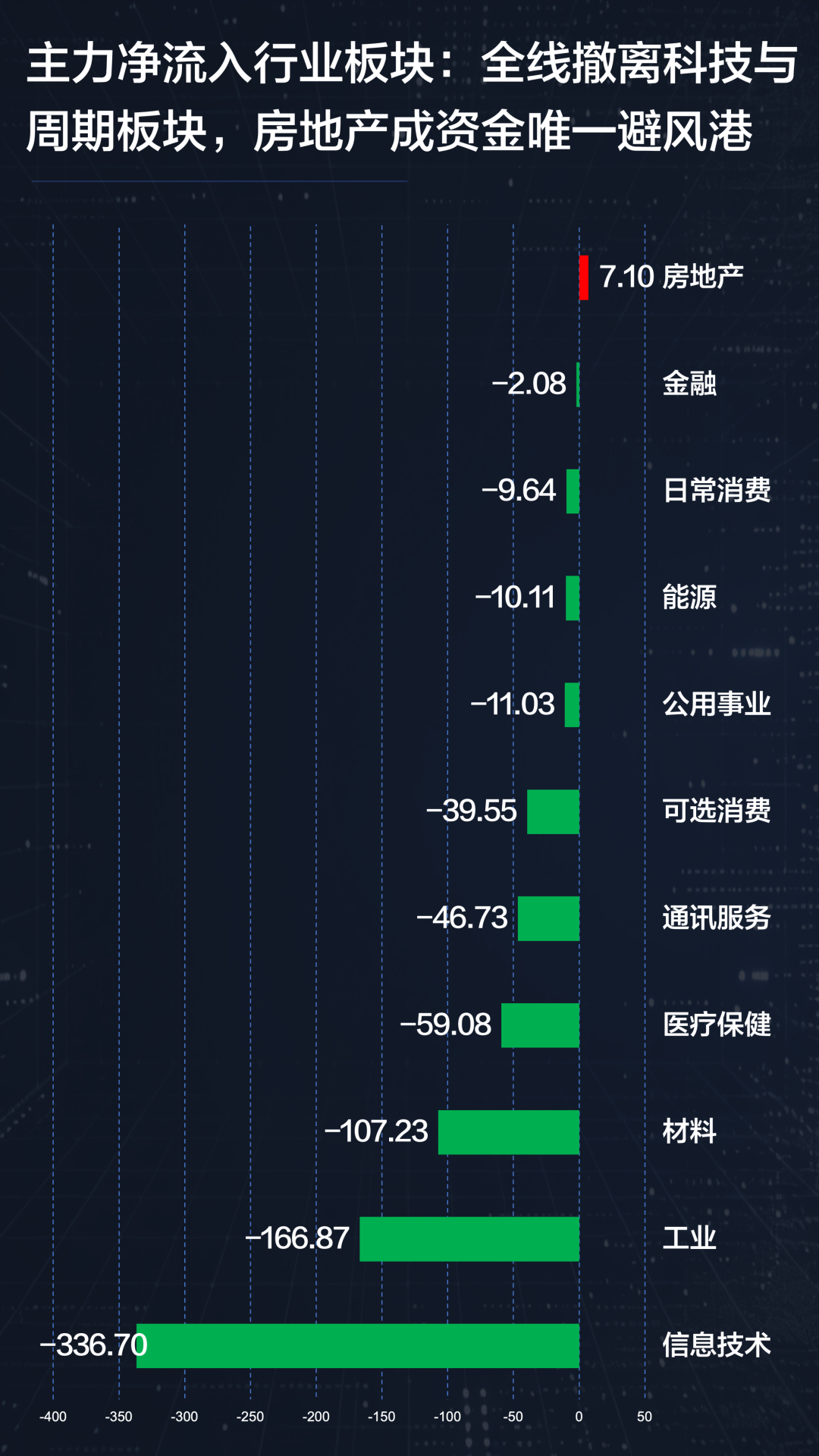 行业层面,主力资金对科技与周期板块整体呈现撤出态势,而房地产板块成为少数获得资金净流入的方向,显示部分资金在高位阶段转向防御或低估值板块。