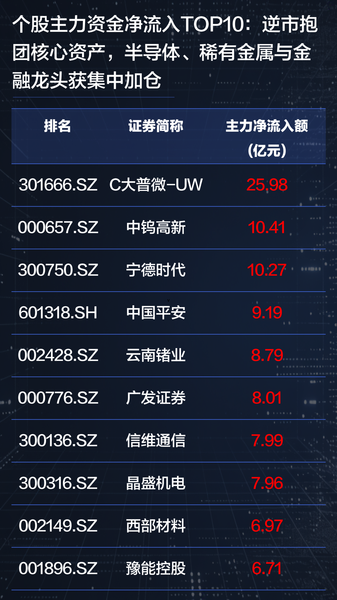 个股维度则呈现“抱团核心资产”的特征,半导体、稀有金属及金融龙头获得资金集中加仓,显示机构资金在高波动环境下更倾向于配置确定性资产。