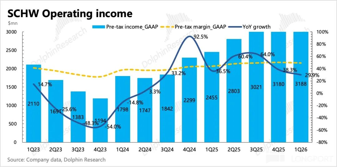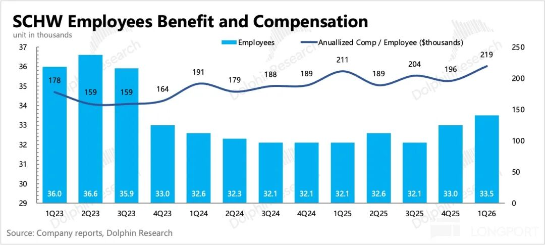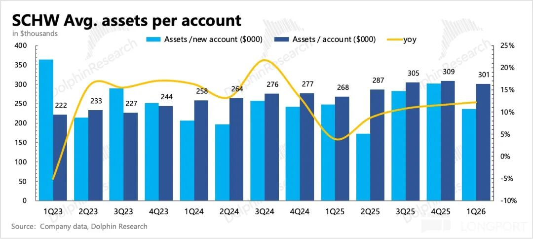 (2)一季度客户资产总规模接近11.8万亿美元,人均账户资产规模为30万美元,环比去年四季度的31万美元有一些下滑,主要来自市场波动。