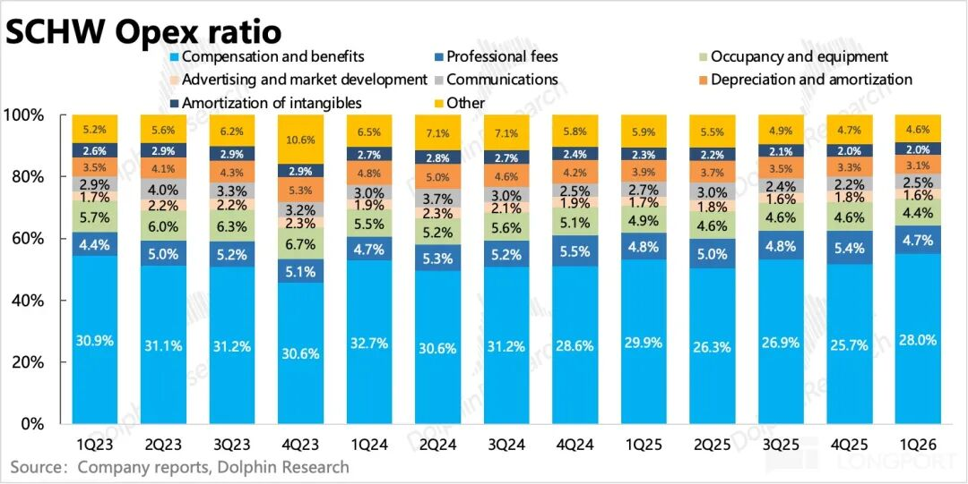 作为成熟的金融平台,支出端一般情况下保持稳定。但嘉信目前有产品创新的需求,因此在专家人员费用上还在保持稳定增长趋势。