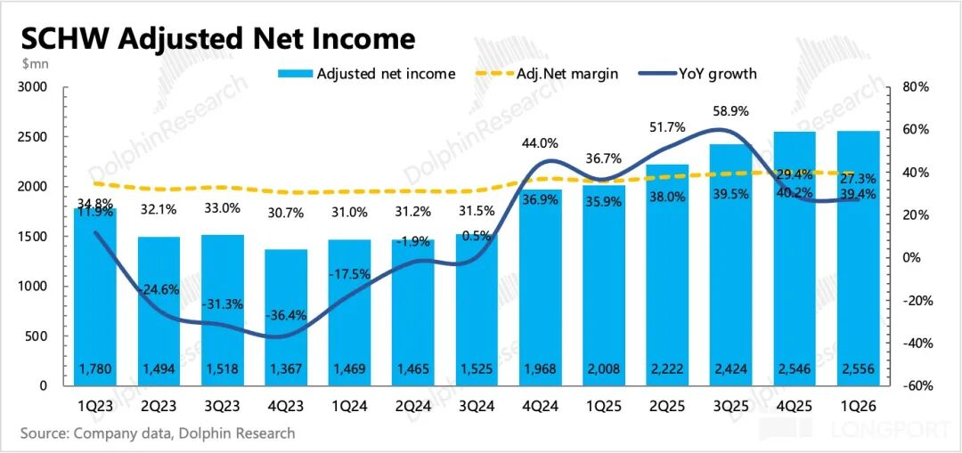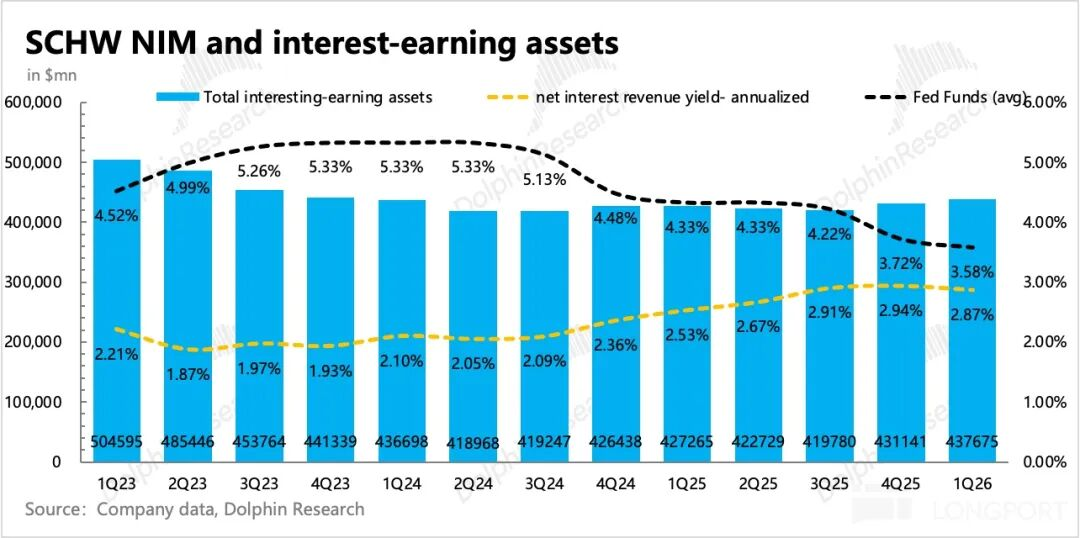 嘉信的一季度整体业绩本身还是稳的,但市场显然抱有更高期待。海豚君认为,市场应该是比较介意核心指标NIM的环比下降。但海豚君在前文也说了,这里面可能存在一些短期的扰动,而站在中长期视角,并非是拖累。