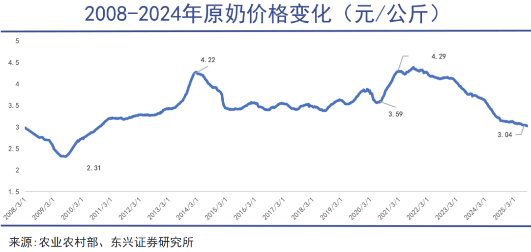 拉长来看,自2021年奶价开始调整以来,已经经历了7年,而下降周期则持续了长达5年的超长时期。当前价格已经创下近15年来的新低,远低于多数牧场的盈亏线。