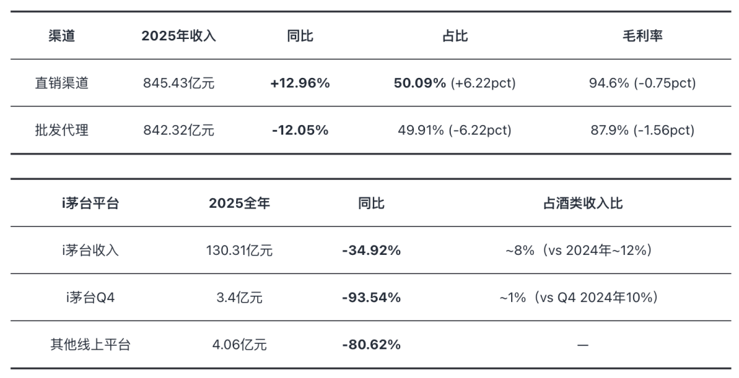 2025年直销占比达50.09%,较2024年的43.87%提升6.22pct,为茅台渠道改革的里程碑节点。