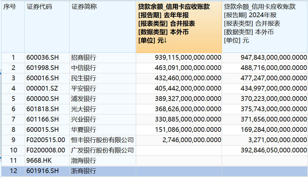 股份制银行格局分化显著,招商、中信、民生等银行信用相关卡贷款余额均同比下行,恒丰、兴业、华夏银行降幅居前,均超10%。浦发银行逆势增长5.16%。