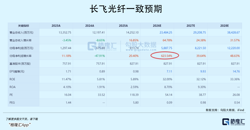 机构对长飞2026年净利增速的一致预期已经打到6倍以上——这意味着市场在定价一个极其乐观的情景,预期再度打满。