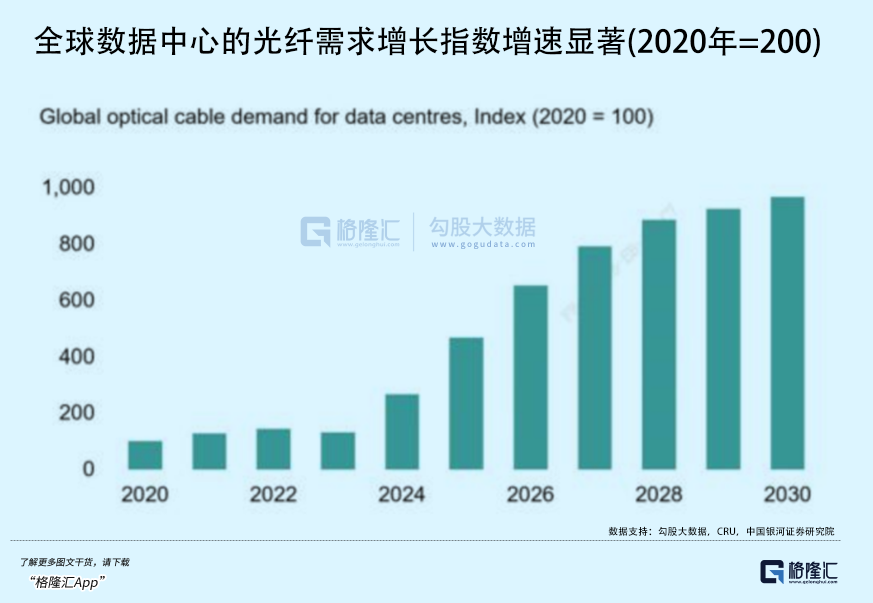 CRU数据显示,2025年全球数据中心光纤需求同比暴增75.9%,到2027年数据中心将占全球光纤总需求的30%——2024年这个比例只有5%。