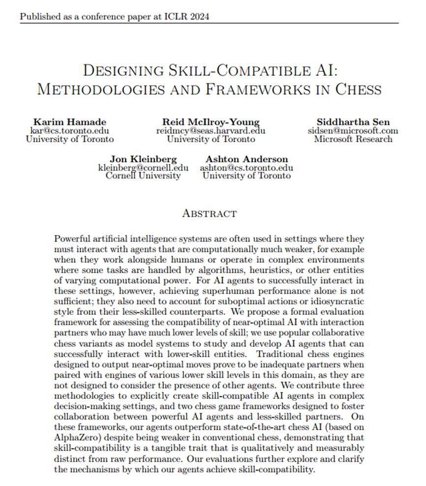 一篇发表在全球人工智能顶会ICLR 2024上的研究,用一个象棋实验告诉我们:AI的价值,不仅是它有多强,更在于它是否“适配”你。