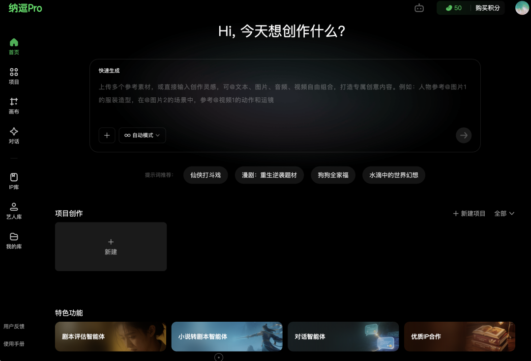 纳逗Pro甚至被称为中国版Sora,但它走得比Sora远。Sora至今主要在演示场景里用,而Nadou Pro直接对标专业制作流程,集成了腾讯混元SeeDance、Kling、Vidu、Hailuo、WAN 5个外部模型,做了编剧、美术、分镜、特效专门的Agent。