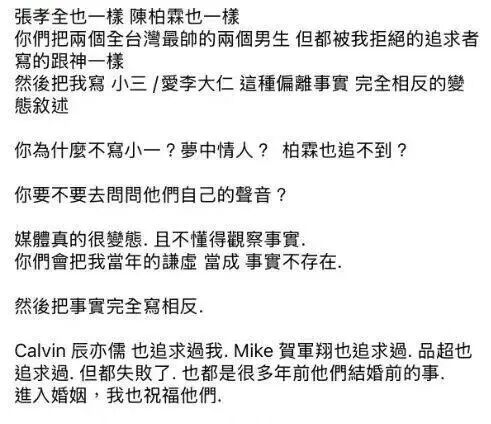 她急于求证,说那些大家眼中的男神、台湾最帅的男生,她尚且全都拒绝过。她点的名字有:张孝全、陈柏霖、辰亦儒、贺军翔、郭品超。