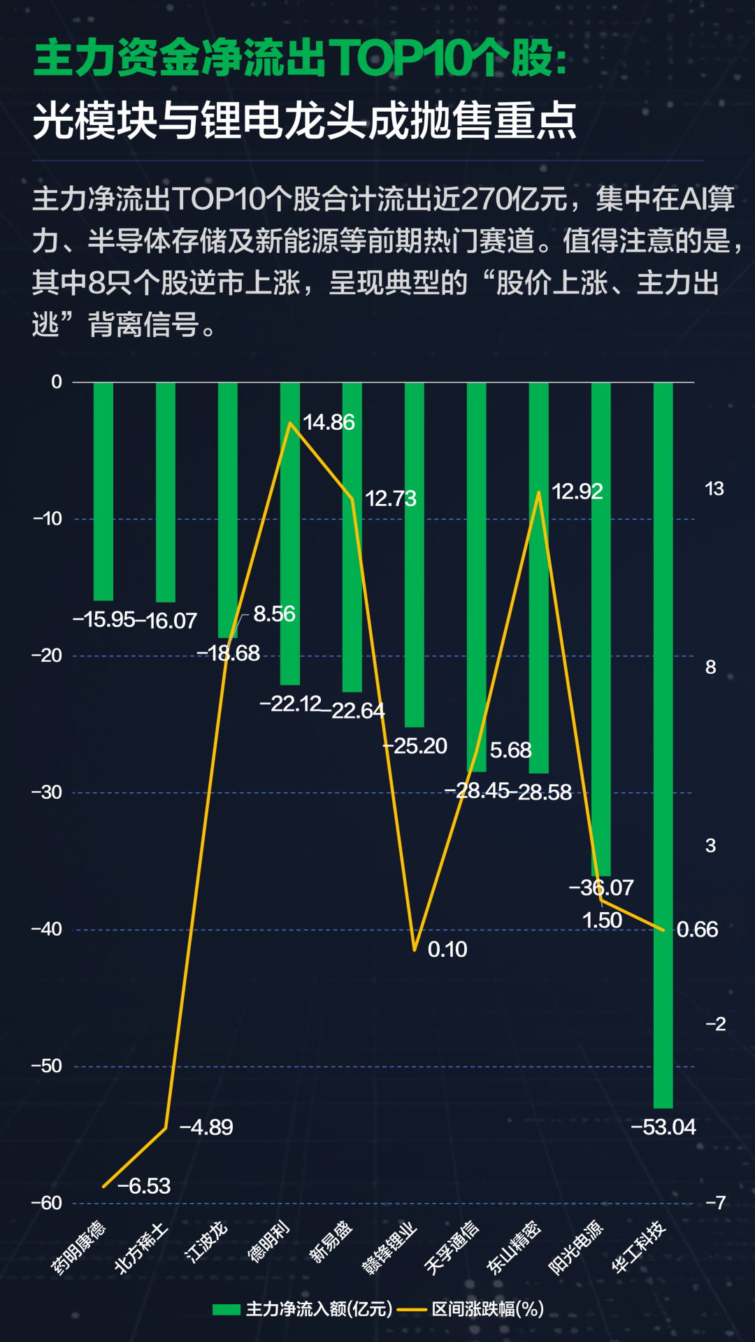 买入标的高度集中于光模块、消费电子及算力产业链,与前期主力资金净流出榜单高度重合,形成典型的“主力派发、散户接盘”格局。