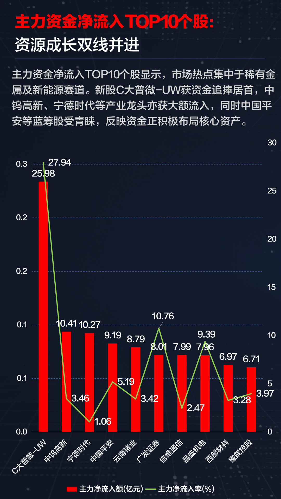 行业配置方面,按申万一级行业统计,主力资金流入居于首位的是有色金属,主力净流入额超16亿元,凸显市场对上游资源品通胀对冲属性的偏好。