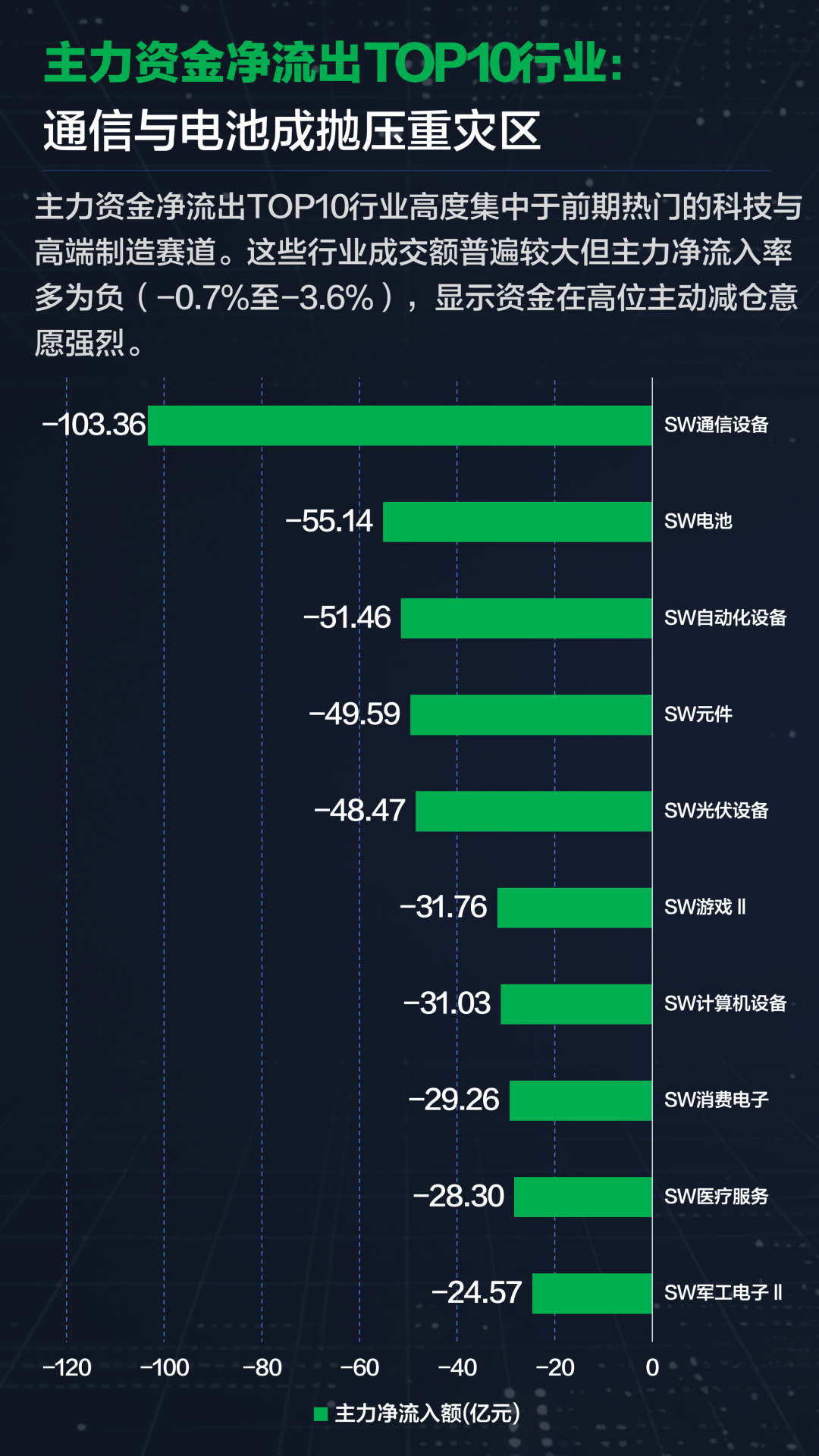 与此同时,申万二级行业中,通信与电池等前期热门赛道成为抛压重灾区,主力资金净流出TOP10行业高度集中于科技与高端制造板块,成交额普遍较大但主力净流入率多为负值,显示资金在高位主动减仓意愿强烈。