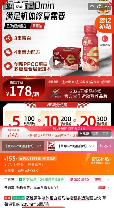 蒙牛称,2025年迈胜业务规模保持较快增长态势,产品结构与业务模型进一步聚焦,强化在耐力运动等细分领域的专业认知与渗透,进一步丰富能量补给、电解质补充及运动后恢复等产品组合,在马拉松、越野跑、铁人三项及Hyrox等运动人群中的影响力稳步提升。与此同时,迈胜持续深耕天猫、京东、抖音及私域等线上渠道,拓展线下多元渠道。