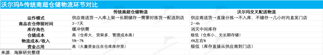 最终,从结果上看,交叉配送每年节省了沃尔玛近300亿美元的库存成本,物流成本率仅为行业的1/2-1/3,大幅提升了沃尔玛的资金利用效率。