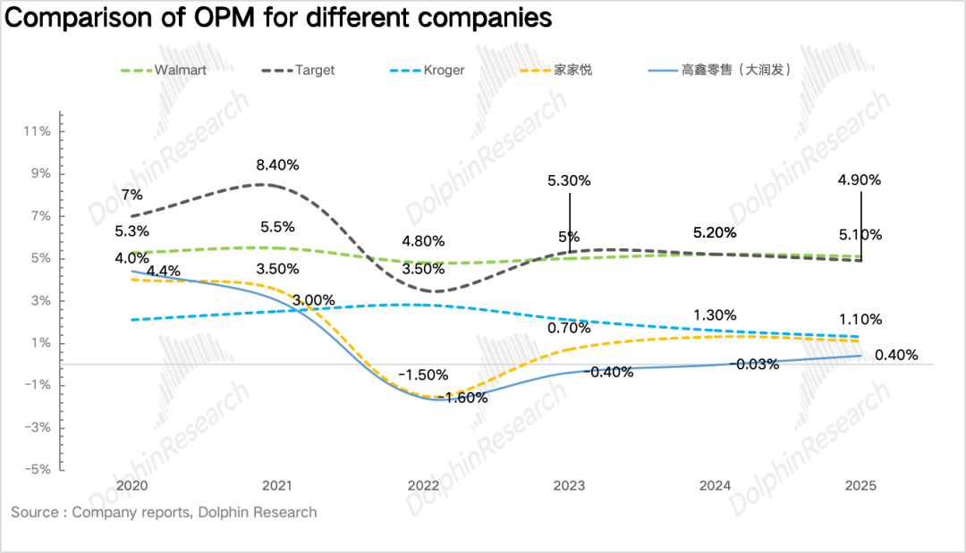 而中国本土综合零售企业,普遍在1%-3%之间,2022年在外部宏观压力下,永辉、大润发、家乐福甚至一度陷入亏损,核心的原因就在于零售行业商品同质化,租金、人工、物流&仓储等刚性费用高、再加上竞争激烈,形成不了品牌溢价的情况下,零售企业的容错率极低,需要通过时刻优化自身效率来在价格上形成优势并让渡给消费者,也就是巴菲特口中“极难做的苦生意”