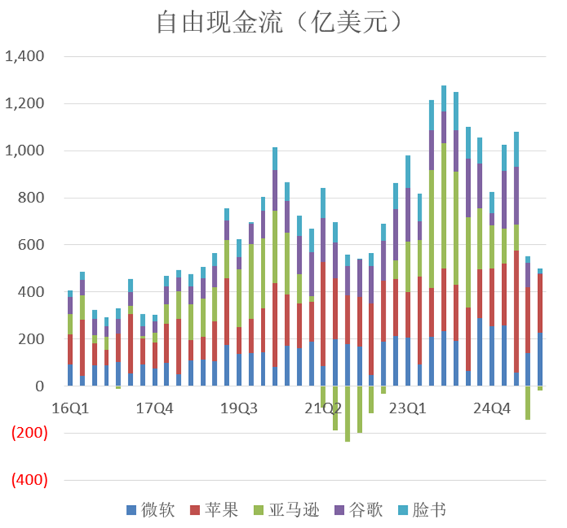 此事如果发生,必将影响深远。从基本面上讲,FAAMG五大巨头是美国科技霸权的具体表现,是从冷战到科网泡沫以来,美国经济攒下的最大家底。它们更是美国股市的中流砥柱,定海神针。要是它们都没有自由现金流了,那几乎就是要变天了。