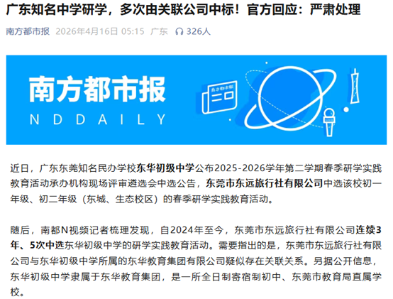 最近,东莞市某民办中学的一则研学中标公告引发各界关注。