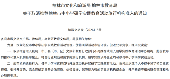榆林废除了研学机构推荐和准入机制,所有合规企业均可参与竞争。