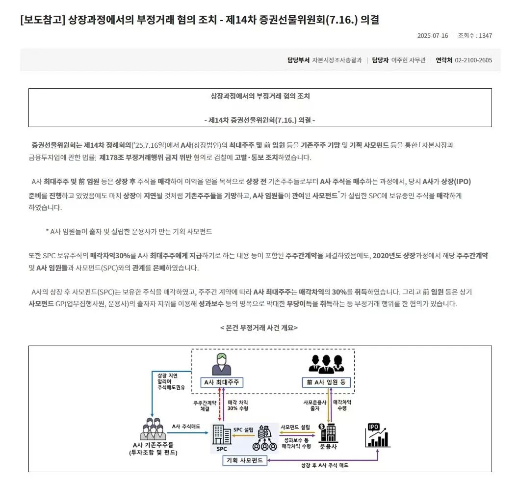▲2025年韩国证券期货委员会关于房时赫的调查,公告中用“A”代指/来源:韩国证券期货委员会官网