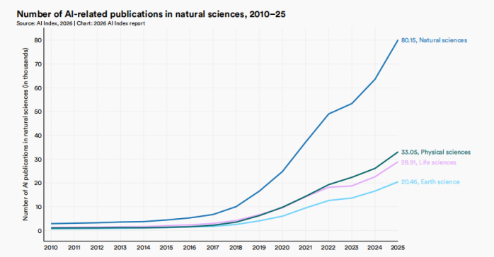 ▲2010–2025年自然科学领域人工智能相关出版物数量