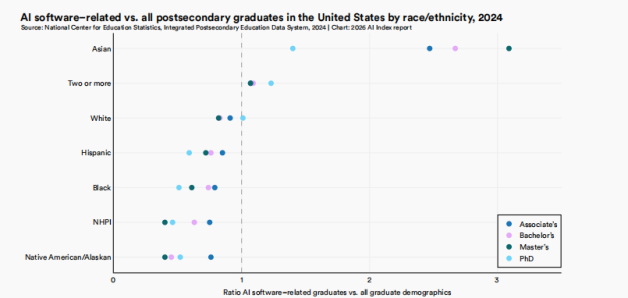 ▲2024年美国按种族/民族划分的AI软件相关从业者与所有高等教育毕业生对比