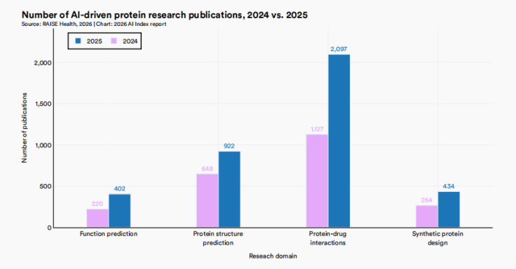 ▲2024年与2025年人工智能驱动的蛋白质研究出版物数量对比