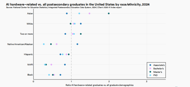 ▲2024年美国按种族/民族划分的AI硬件相关从业者与所有高等教育毕业生对比