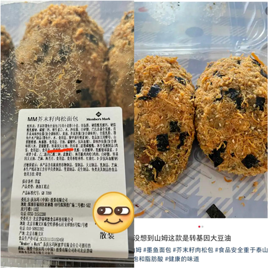 据该消费者表示,山姆会员商店的MM芥末籽肉松面包,以前的外包装上标注了配料表;在配方焕新后,该款产品不仅在线下售卖时“隐藏”了配料表,仅标注:配料成分见散装食品标签或线上产品信息,而且新加入的原味沙拉酱中还使用了备受争议的“转基因大豆油”成分。