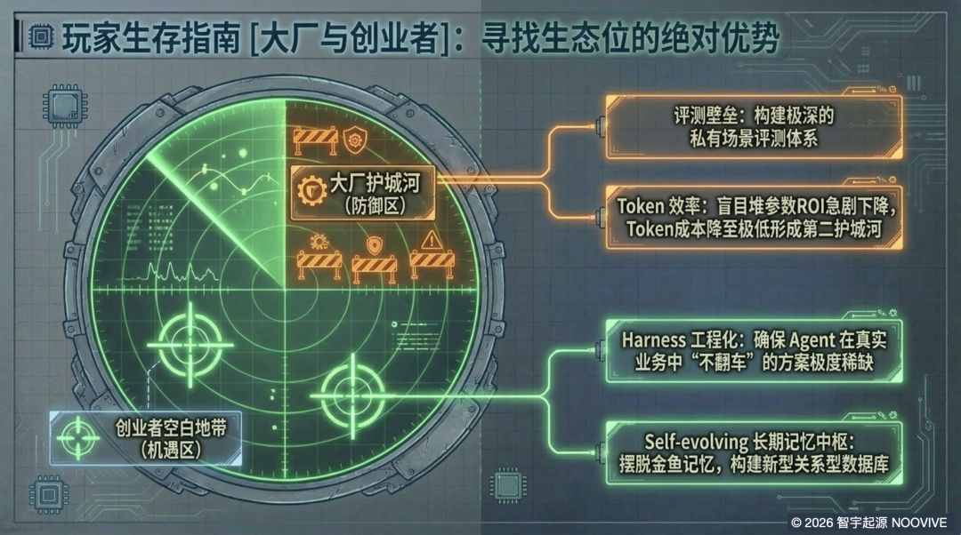 大赛道已经换了,别在旧地图上找新大陆。一年前你跟投资人讲"我们有10B参数的模型",对方会认真听。现在?李子玄说得很直白——"公域榜单背后是十个私有榜单"。参数和公域跑分已经不能证明任何事,真正的壁垒是你针对具体场景构建的私有评测体系和训练闭环。这意味着:创业者不需要从零训模型,但必须从零建评测。