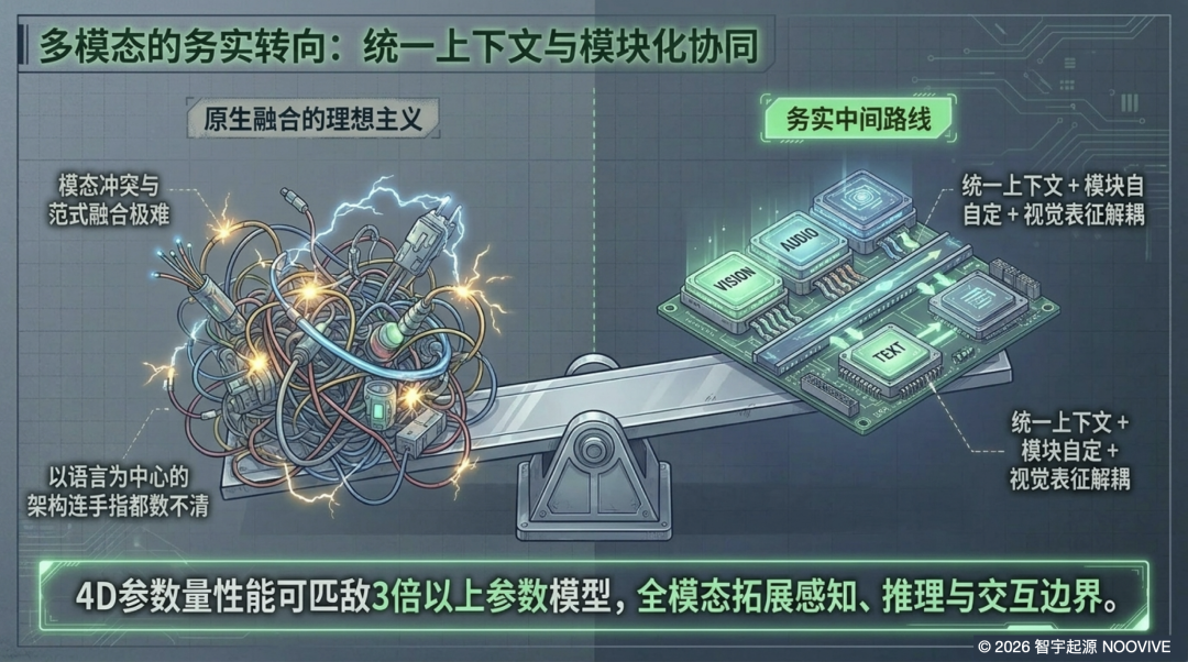 圆桌讨论进一步印证了这条务实路线的可行性:原生融合的多模态训练代价太大,而小参数量的动态模型如果能在外部叠加编辑生成能力,性能并不比原生方案差,同时还能适配更小、更快速的部署场景。理想主义与实用主义之间,存在一条值得走的中间路线。