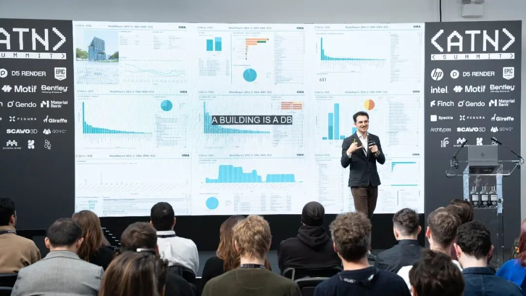 而OMA的BIM与设计技术经理Giuseppe Dotto则提出了一个颠覆性观点:在建筑领域,AI应是建筑本身的延伸,而非仅是建筑师的工具。他探讨将建筑视为含设计、材料、施工到运营互联信息的复杂“活数据库”,通过OMA全球实践案例,将BIM模型与项目数据重新定义为“建筑智能”,各元素构成更大知识系统。他认为机遇在于有意义地组织连接数据,实现建筑新查询、交互与“对话”……这些公司都正从各自视角出发,对自己的AI体系进行布局规划。