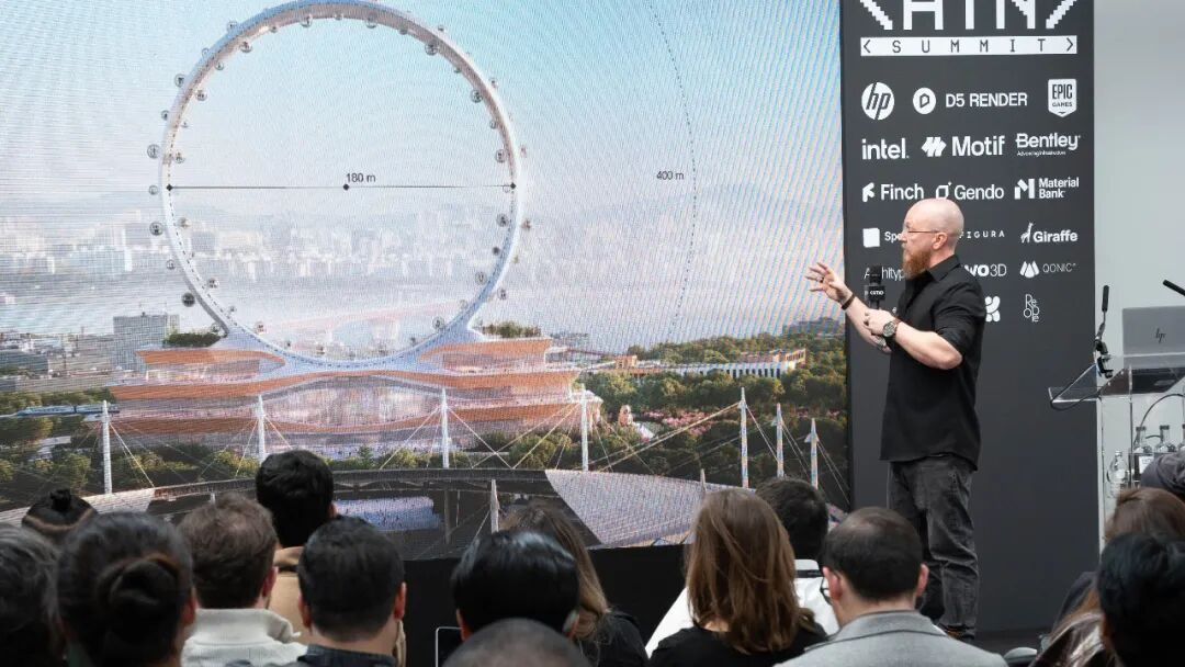 其中,BIG设计技术总监German Otto Bodenbender结合在BIG事务所的工作经验,分享了一个小型设计技术团队如何助力数百名建筑师将AI融入工作流程,涵盖从早期概念设计到叙事表达与知识共享的全过程。演讲强调,AI并非取代建筑师,而是赋能建筑师——加速创意生成、提升可视化效果,并以前所未有的速度解锁新的创作可能性。