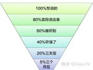 而另一方面,当这80%的东西进入别人的耳朵时,由于个人背景、思维方式的不同,对方只留存了60%的信息,其中能消化理解的大概只有40%。