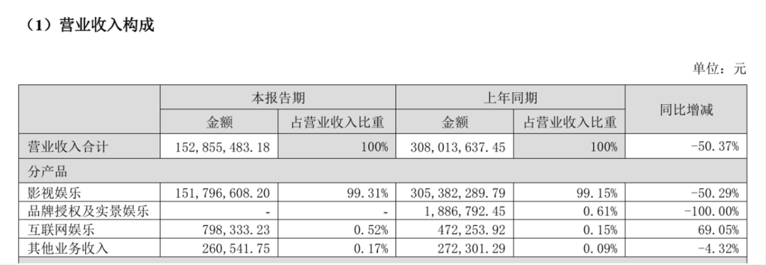 《BUG》栏目注意到,自2025年四季度以来,华谊兄弟已再无参投的电影项目上映。2025年上半年,公司影视娱乐板块收入同比大幅下降50.29%至1.52亿元。