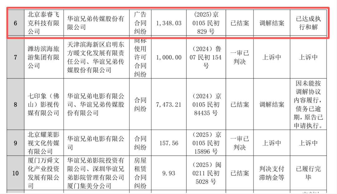《BUG》栏目发现,这笔欠款源于一笔约1140.5万元的广告合同纠纷,至今逾期约5年。更令人意外的是,今年2月华谊兄弟公告披露,双方已达成执行和解,为何债权人再度出手?