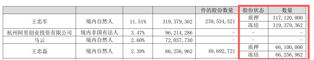 截至2025年上半年末,王忠军质押股数为3.17亿股,占其持股比例99.29%,王忠磊质押股数为6610万股,占其持股比例99.76%,两人所持华谊兄弟股份累计被冻结比例均为100%,合计占公司总股本的13.9%。
