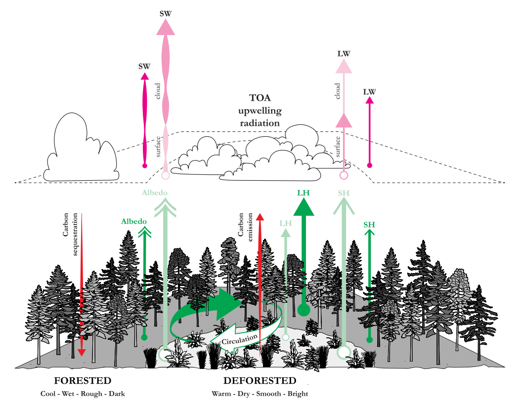 所以,整张图讲清楚了:砍伐森林,通过改变地表,进而改变低空云,最终在大气层顶部制造了一个“净冷却信号”。这个信号虽然真实存在,但需要我们冷静看待。