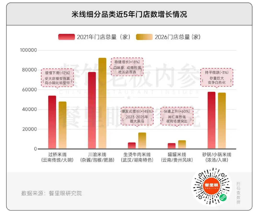 从细分品类演变来看,米线赛道正在经历一轮典型的结构性替代: