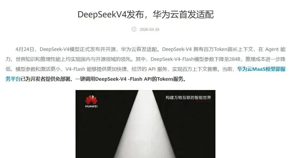 4月24日,DeepSeekV4横空出世,万亿参数,百万级上下文,最关键一点,它首次与华为昇腾等国产硬件,实现了全栈深度适配,底层代码彻底重写,跑在华为自研的CANN框架上。