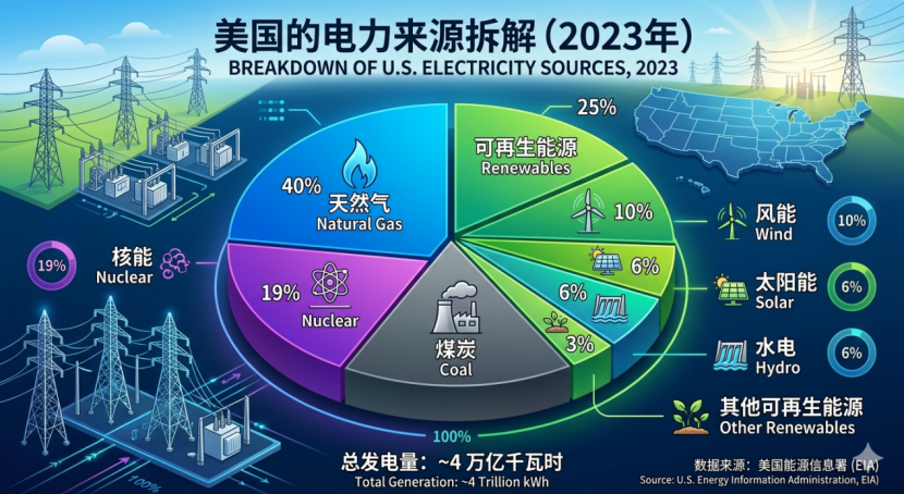 更讽刺的是,贝森特在批评中国电力结构依赖煤炭的同时,对美国自身能源结构中的化石燃料依赖却只字不提。美国的电力来源中,天然气占比超过百分之四十,煤电虽然在下降但仍有百分之十五左右,加上石油发电,化石燃料的整体占比仍然在百分之六十上下。美国在可再生能源领域的发展速度远远落后于中国,风电和光伏的新增装机量仅为中国的几分之一。如果电动汽车的清洁程度取决于电网的清洁程度,那美国的电动汽车同样无法自称完全清洁。但贝森特显然不会这么说,因为他的目标从来不是进行一场诚实的能源讨论,而是在大国竞争的叙事战场上为美国争夺一个有利的位置。