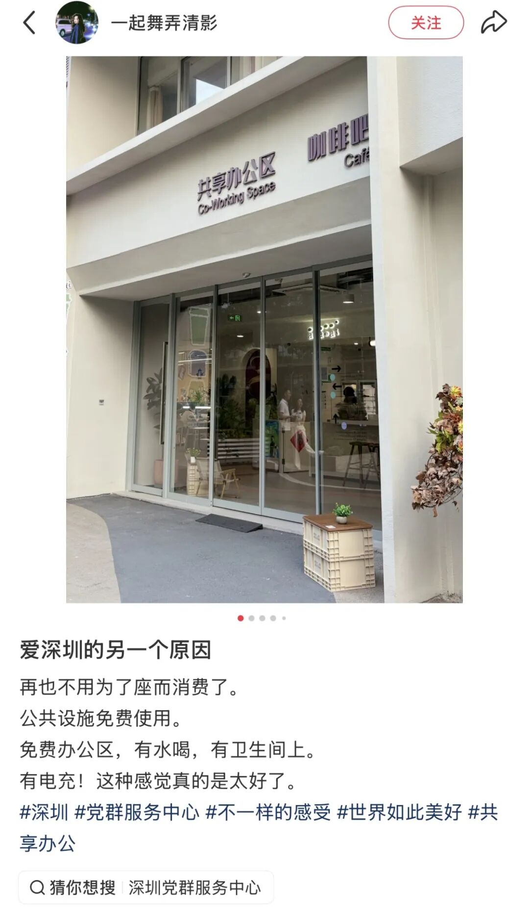 “深圳找不到工作的朋友,不用担心白天去哪里,找找你们附近的党群服务中心,大部分都会有免费的读书阅读室,工作日平时没什么人,我一杯奶茶已经在这里坐了一天了”,阿真在社交媒体上“宣传”道。