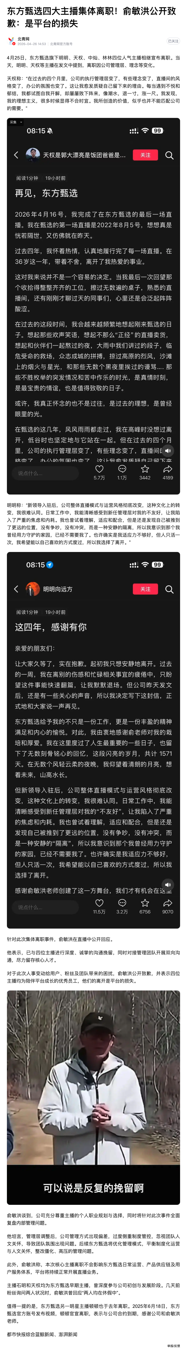 后台有人问怎么看董宇辉之后,东方甄选又有4个主播离职的事情,是不是公司人心涣散了?
