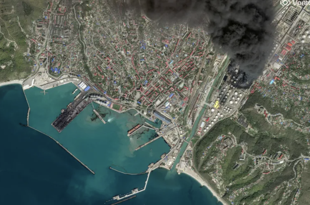 4月17日,俄罗斯克拉斯诺达尔边疆区图阿普谢发生乌克兰袭击事件,导致石油泄漏到黑海。图源:路透社
