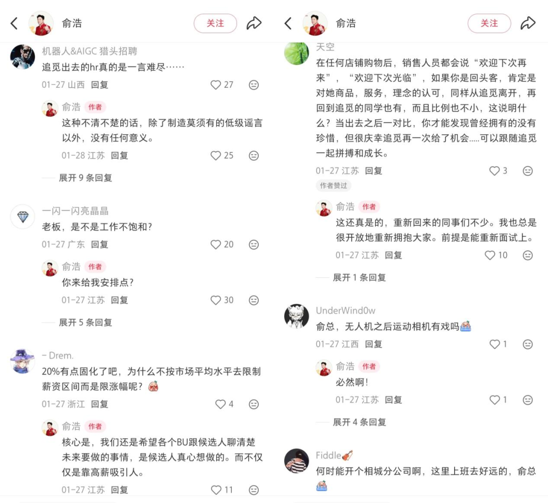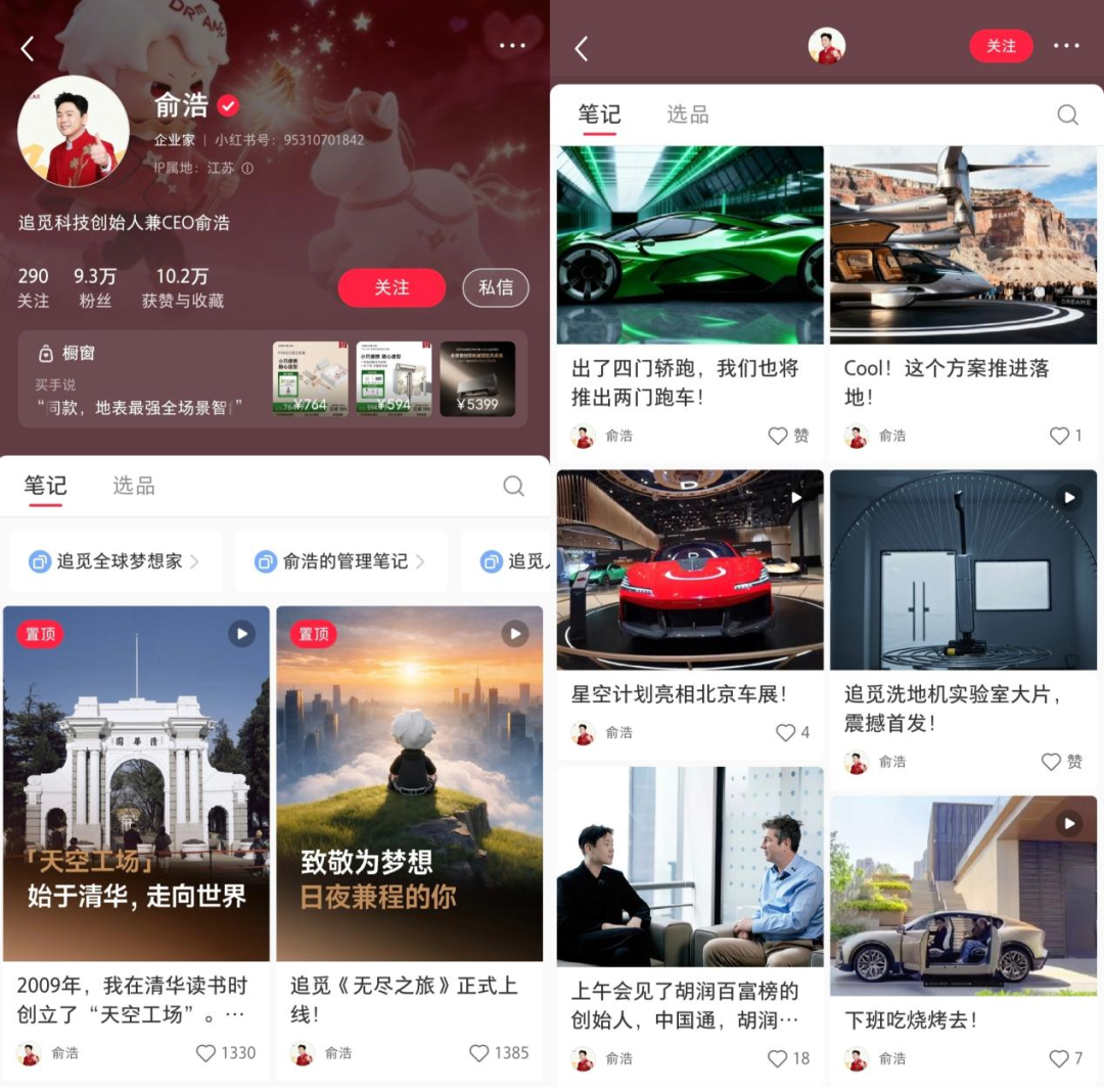 早在去年8月18日,俞浩便在小红书的个人账号发布了首条帖子。随后开始高频“冲浪”,针对评论区有关追觅的传言进行回复,也一度被称为“最有活人感的CEO”。