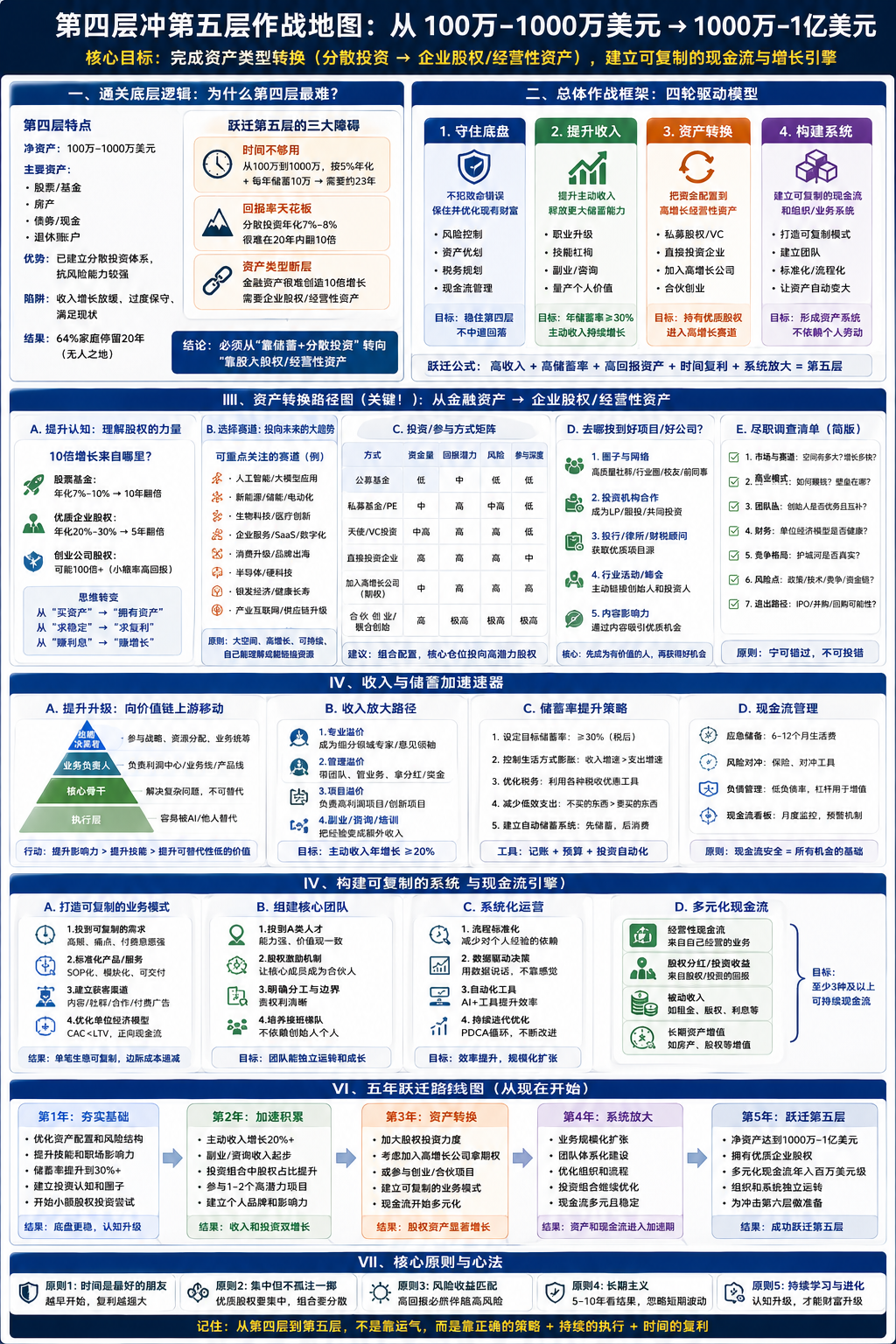 在AI时代,这个逻辑被放大了:AI负责“流量”:它是我们提升工作效率、增加收入流(工资)的工具。资产负责“存量”:它是我们利用时间杠杆,让钱生钱的核心。如果你把所有时间都用来卷工作(提升流量),而忽视了资产配置(存量),那么即便AI让你的时薪翻倍,你也只是在第四层原地踏步。因为单纯的工资收入,很难支撑你跨越阶层。