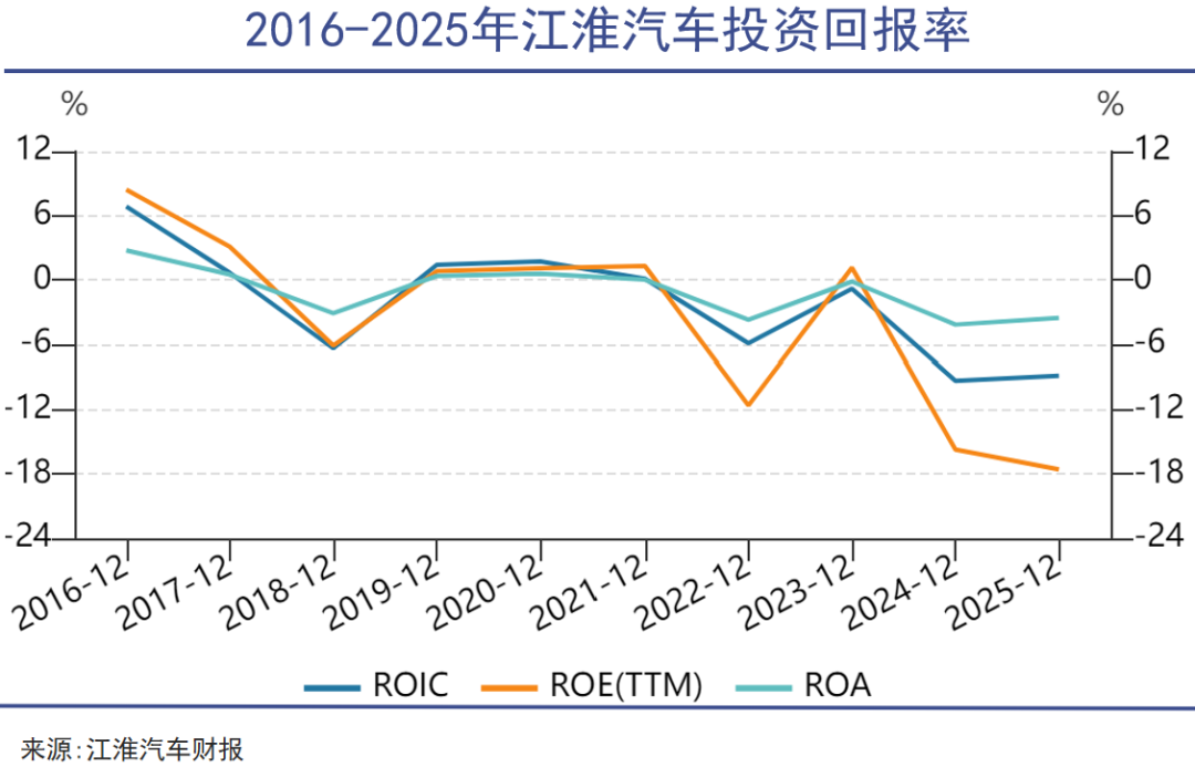即便是在燃油车时代,江淮汽车也没能从外资伙伴身上赚到过钱。其联营企业大众安徽,自成立以来就持续烧钱,2023至2025三年累计亏损约115亿元,每售出一辆车造成的账面亏损达12万元,远不能与北京奔驰相比。