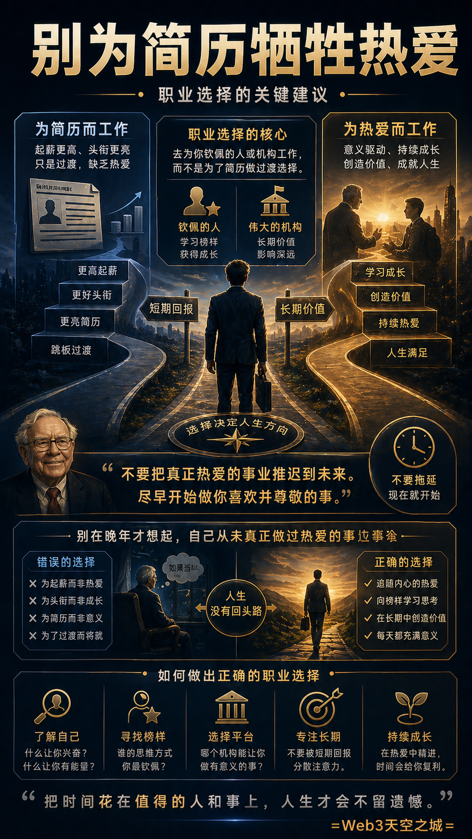 在面对即将步入职场的年轻人时,巴菲特给出的建议既辛辣又直白。他发现许多精英学生习惯于为了“完善简历”而选择一些自己并不喜欢的管理咨询或过渡性工作。对此,巴菲特提出了一个充满幽默感的警告。